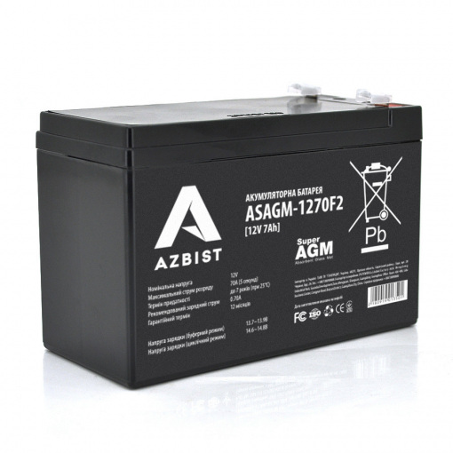 Описание аккумулятора AZBIST Super AGM ASAGM-1270F2 12V 7Ah