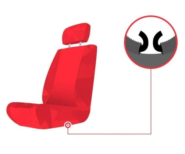 Чехлы для спинки и заднего сиденья оснащены системой молний, благодаря чему чехлы можно использовать в автомобилях как с полными, так и с разделенными сиденьями.