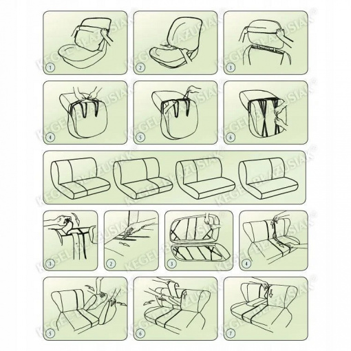 Чехлы SPORT LINE+ очень просты в установке – они быстро надеваются, благодаря отверстиям, закрепленным на липучке, что позволяет одевать их без необходимости снимать подголовники, а затем фиксируются с помощью вшитых резиновых ручек и безопасных, пластиковые крепежные клипсы. Задняя поверхность чехлов наращена, благодаря чему защищена спинка сидений (важная особенность для владельцев маленьких детей). Чехлы легко поддерживать в чистоте, поскольку их можно стирать согласно информации на этикетке – при 40 °. Продукт серии BASIC LINE ,девиз которого – очень хорошее качество по доступной цене. Производится из качественного сырья. Чехлы этого бренда отвечают всем стандартам прочности и качества. Их кропотливое изготовление из высококачественных материалов совершенно подходит для авто индустрии.