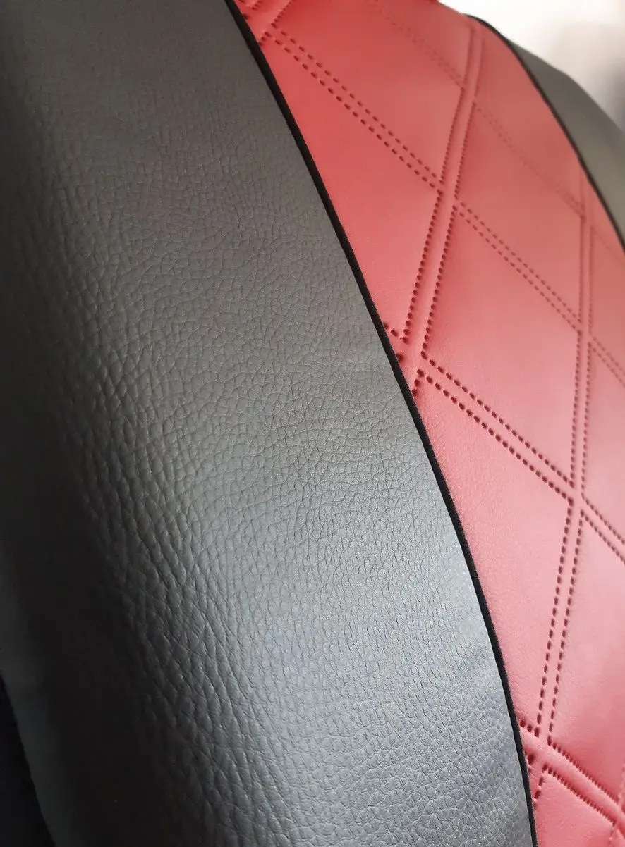 Авточехлы из эко кожи GEELY CK 2 2011-2016 (2002-2011) POK-TER ELIT Premium с красной вставкой