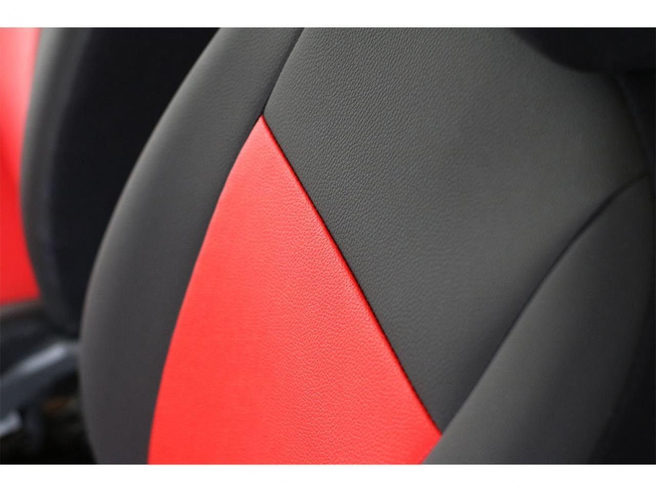 Авточехлы из эко кожи Toyota Yaris (1999-2005) POK-TER Road с красной вставкой