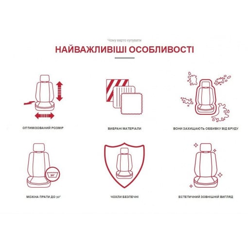 • Отделочный материал – трикотажное полотно характеризуется гибкостью и повышенной стойкостью к истиранию и износу. Структура материала позволяет лучше адаптировать чехлы к оригинальной обивке.