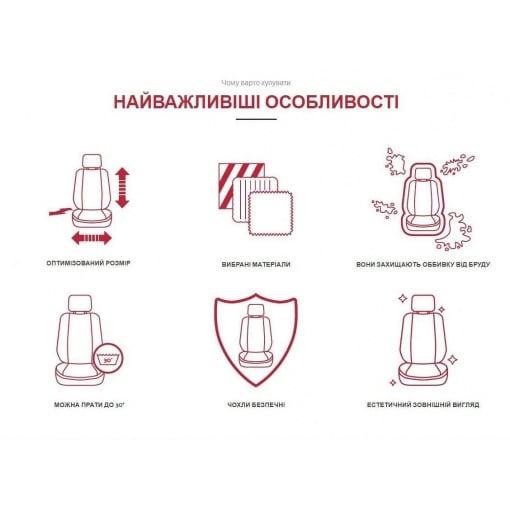 Чехлы для спинки и заднего сиденья оснащены системой молний, благодаря чему чехлы можно использовать в автомобилях как с полными, так и с разделенными сиденьями.