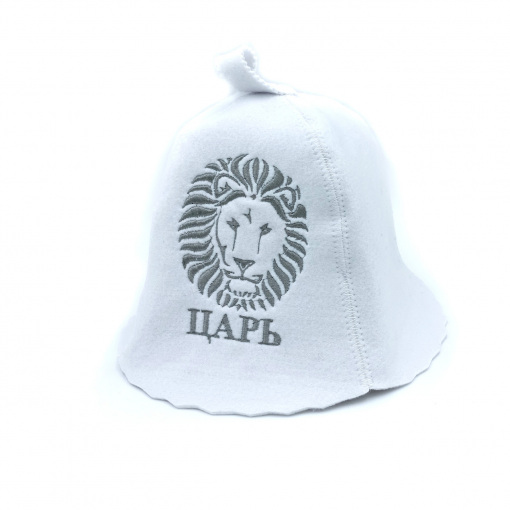 Банная шапка с вышивкой "Лев" изготовлена из искусственного фетра. Цвет фетра белый.