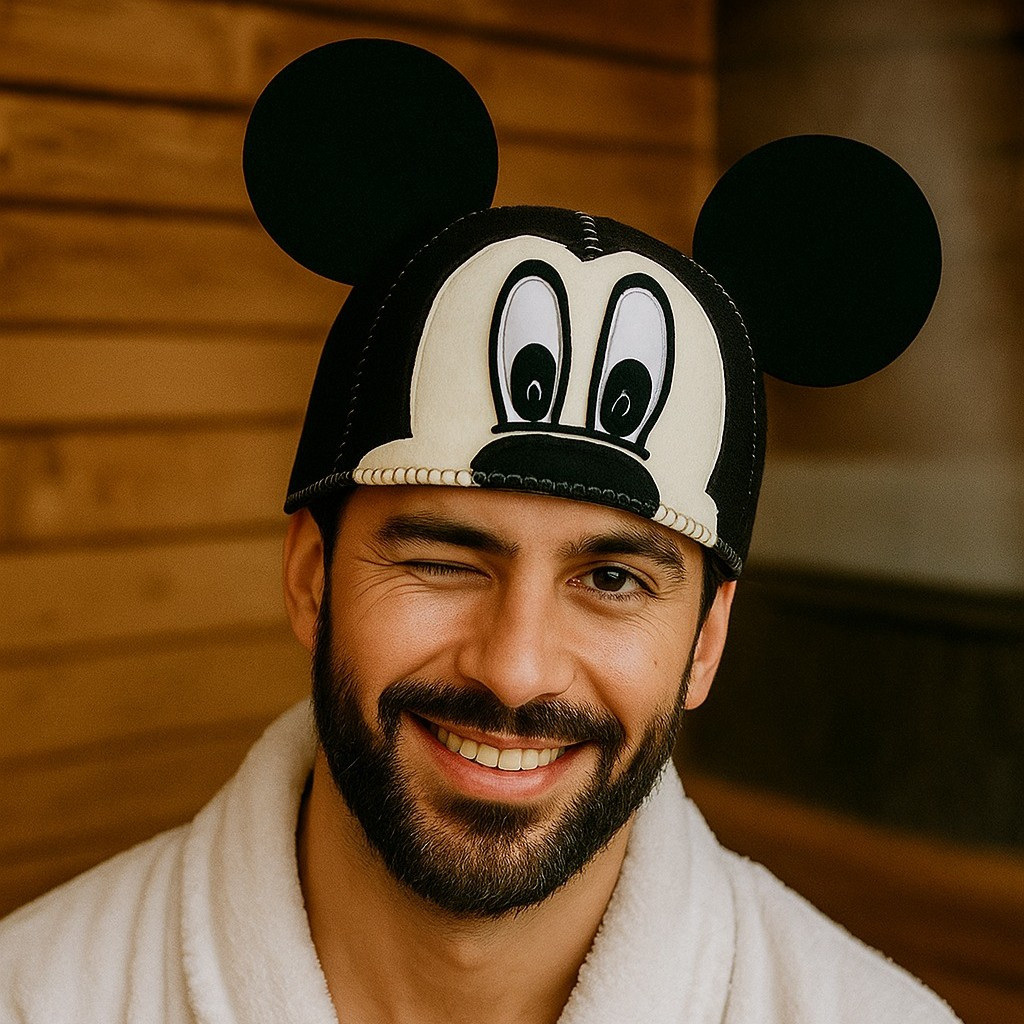 Уникальная банная шапка в стиле легендарного персонажа Disney! Идеально защищает голову от жара и пара, при этом поднимает настроение и добавляет шарма.
