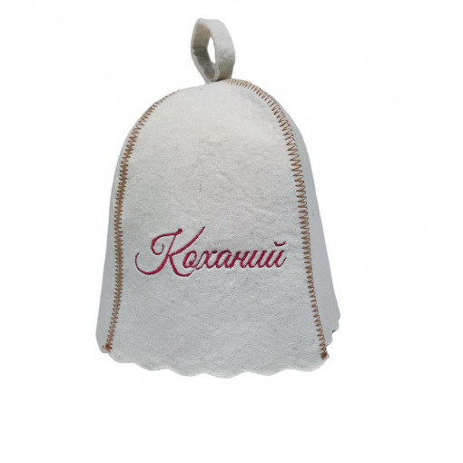 Банная шапка с вышивкой "Коханий" изготовлена из натурального войлока. Цвет войлока белый.