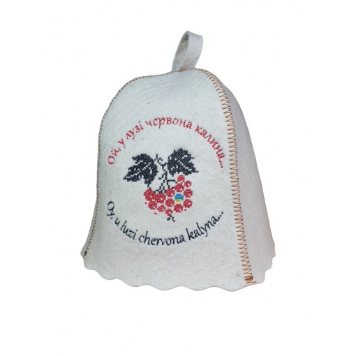 Банная шапка с вышивкой "Ой у лузі" изготовлена из натурального войлока. Цвет войлока белый.