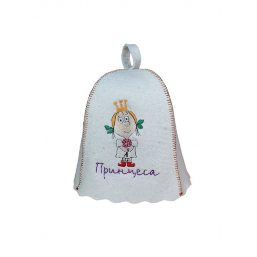Банная шапка с вышивкой "Принцеса" изготовлена из натурального войлока. Цвет войлока белый.