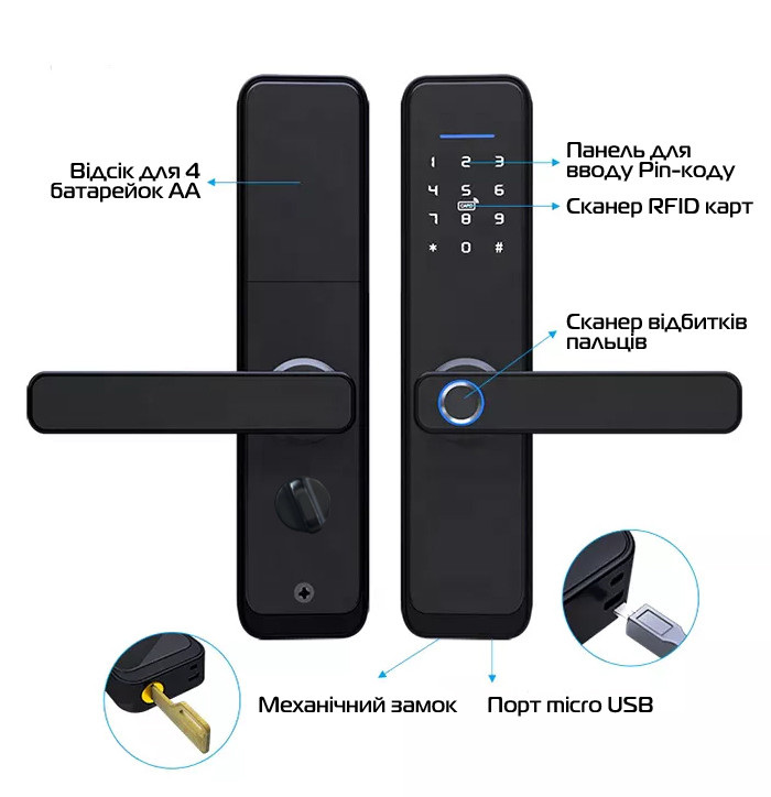 • Способы открытия: паролем, картой, брелоком, браслетом, отпечатком пальца, приложением, механическим ключом;