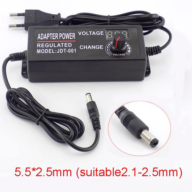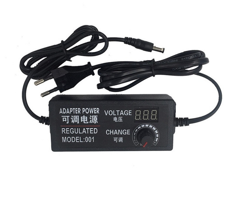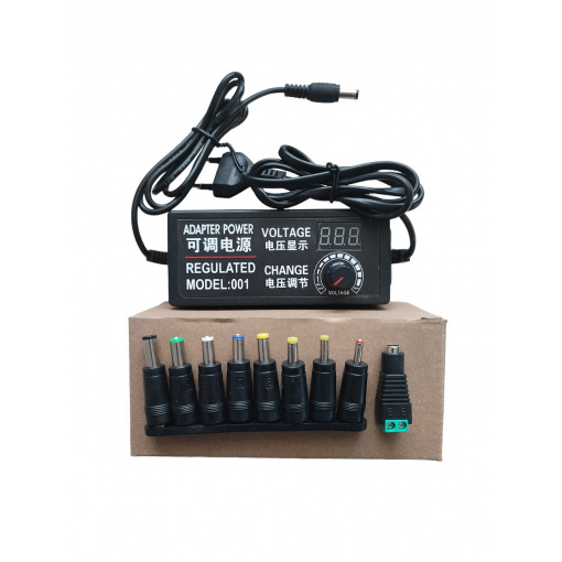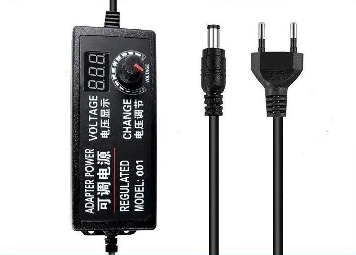 Блок питания универсальный регулируемый 3-24В 2А, 5.5x2.5 мм c переходниками 9шт. Чёрный Блок питания используется для подключения к бытовой сети переменного тока различных устройств, имеющих напряжение питания 3 – 24 В постоянного тока и максимальный потребляемый ток до 2 А. Блок питания может использоваться как лабораторный, так и в качестве замены вышедшему из строя блоку питания в любой технике со значением рабочего напряжения 3 – 24 В DC. Блок питания предназначен для использования только внутри помещений. Для монтажа на плоской поверхности на корпусе блока питания предусмотрено два подвесных ушка, каждое из которых имеет три монтажных отверстия. Для подключения к бытовой электросети блок питания оснащен вилкой типа CEE 7/16 (евровилка), сетевой кабель питания имеет длину 105 см. Входное напряжение: 100 – 240 В переменного тока 50/60 Гц. Для подключения потребителей используется штекер 5,5 x 2,5 мм, кабель имеет длину 90 см. Выходное напряжение: 3 – 24 В постоянного тока, выходной ток до 2 А. Блок питания оснащен встроенным вольтметром, показания которые отображаются на 3-разрядном LED дисплее. Дисплей используется для отображения текущего значения выходного напряжения. Блок питания имеет возможность регулировки значения выходного напряжения. Изменение значения выходного напряжения осуществляется с помощью регулировочной ручки. Регулировочная ручка оснащена функцией включения/выключения. Отлично подходит для зарядных устройств аккумуляторных батарей (Liitokala Lii-500, Xtar и др.), LED светодиодных лент, Wi-Fi роутеров, спортивных тренажеров с экранами, ТВ-приставок, видеокамер в системах видеонаблюдения, сетевым адаптером для компактных телевизоров, нетбуков и DVD плееров, а также используется во многих других устройствах. Характеристики: 3-разрядный LED-дисплей с индикацией выходного напряжения Потенциометр для включения/выключения БП и плавной регулировки выходного напряжения Отверстия для закрепления блока на поверхности Входное напряжение: 100-240 В Выходное напряжение: 3-24 В Выходной ток: до 2 А Максимальная мощность: 48 Вт Тип штекера: 5.5 x 2.5 мм Защита от КЗ и перегрева Материал корпуса: пластик Длина кабеля: от блока до штекера – 90 см, от блока до вилки – 90 см Размер: 11.8 x 5.1 x 3.2 см Вес: 225 г Комплектация: Блок питания Набор переходников 9 шт. Коробка