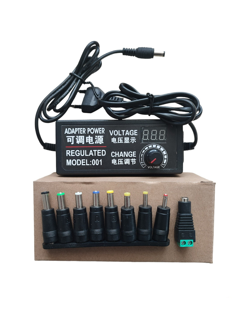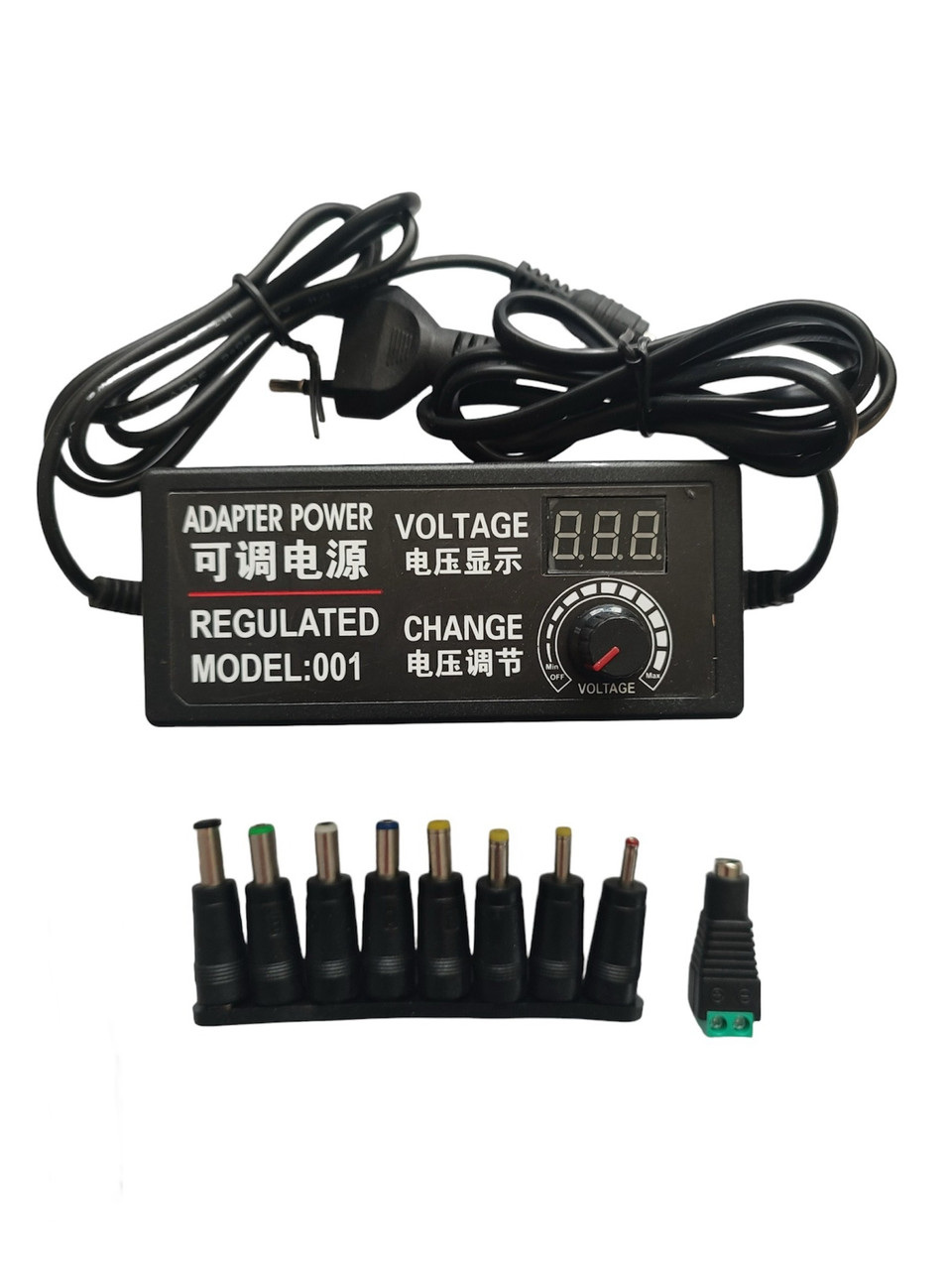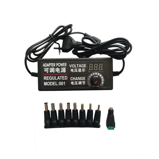 Блок питания универсальный регулируемый 3-24В 2А 5.5x2.5 мм c переходниками 9шт Чёрный (3-24В2А) Foxsur