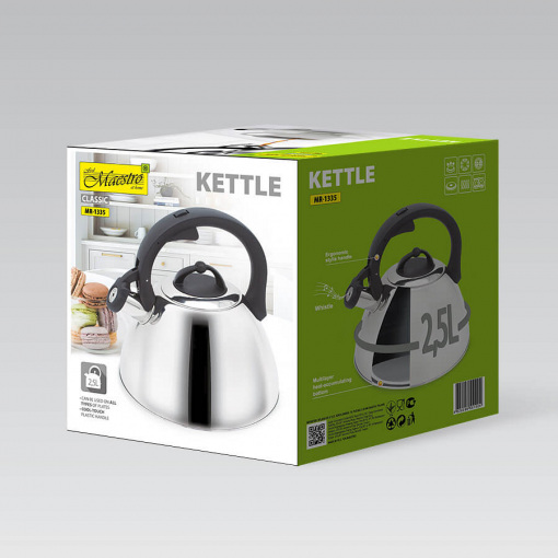 Чайник MR-1335 – это квинтэссенция гармонии элегантности и эффективности. Имея емкость 2,5 литра, он готов удовлетворить ваши потребности, связанные с приготовлением горячих настоев или кипячение воды, обеспечивая при этом привлекающий внимание современный дизайн.