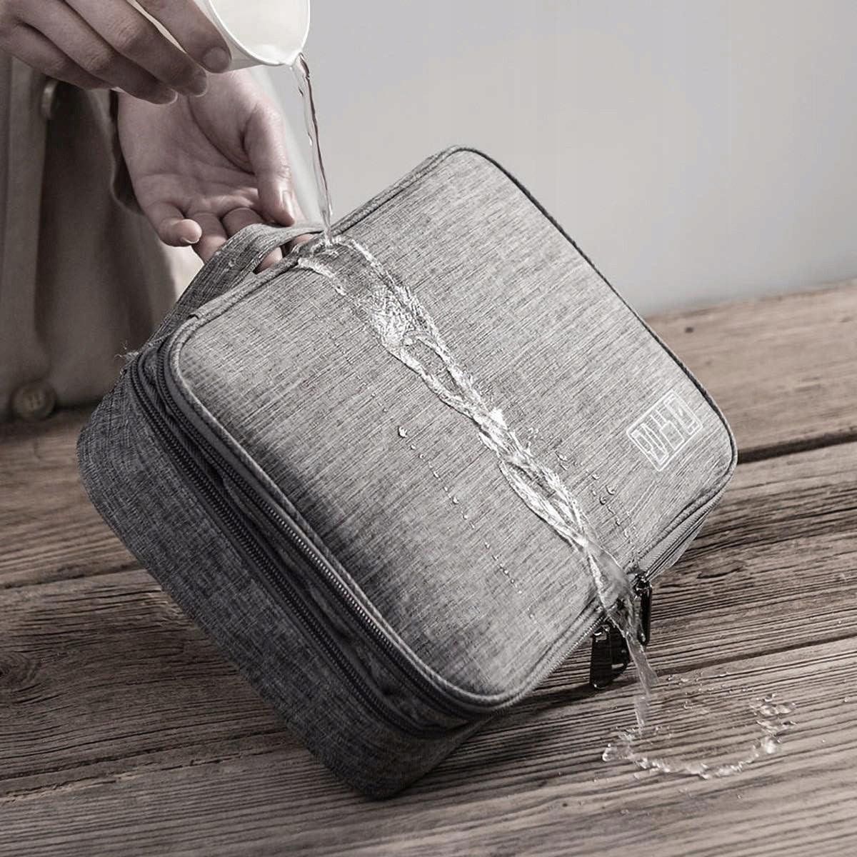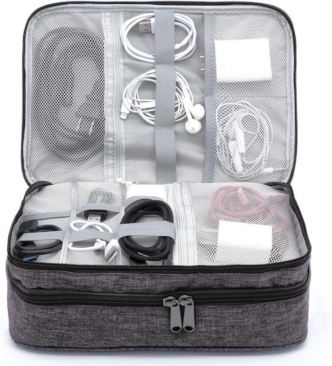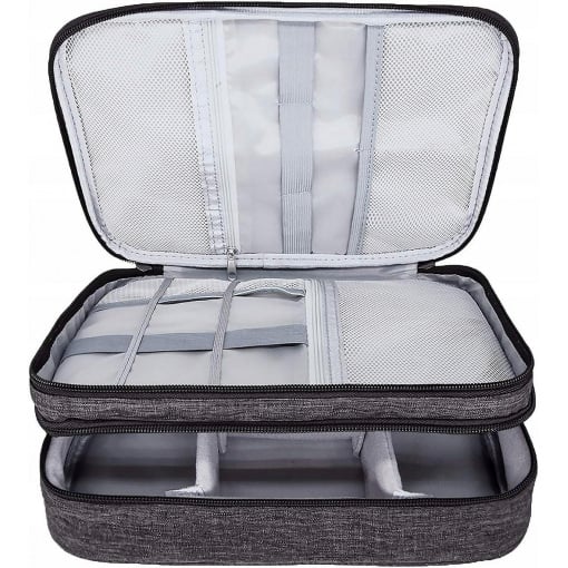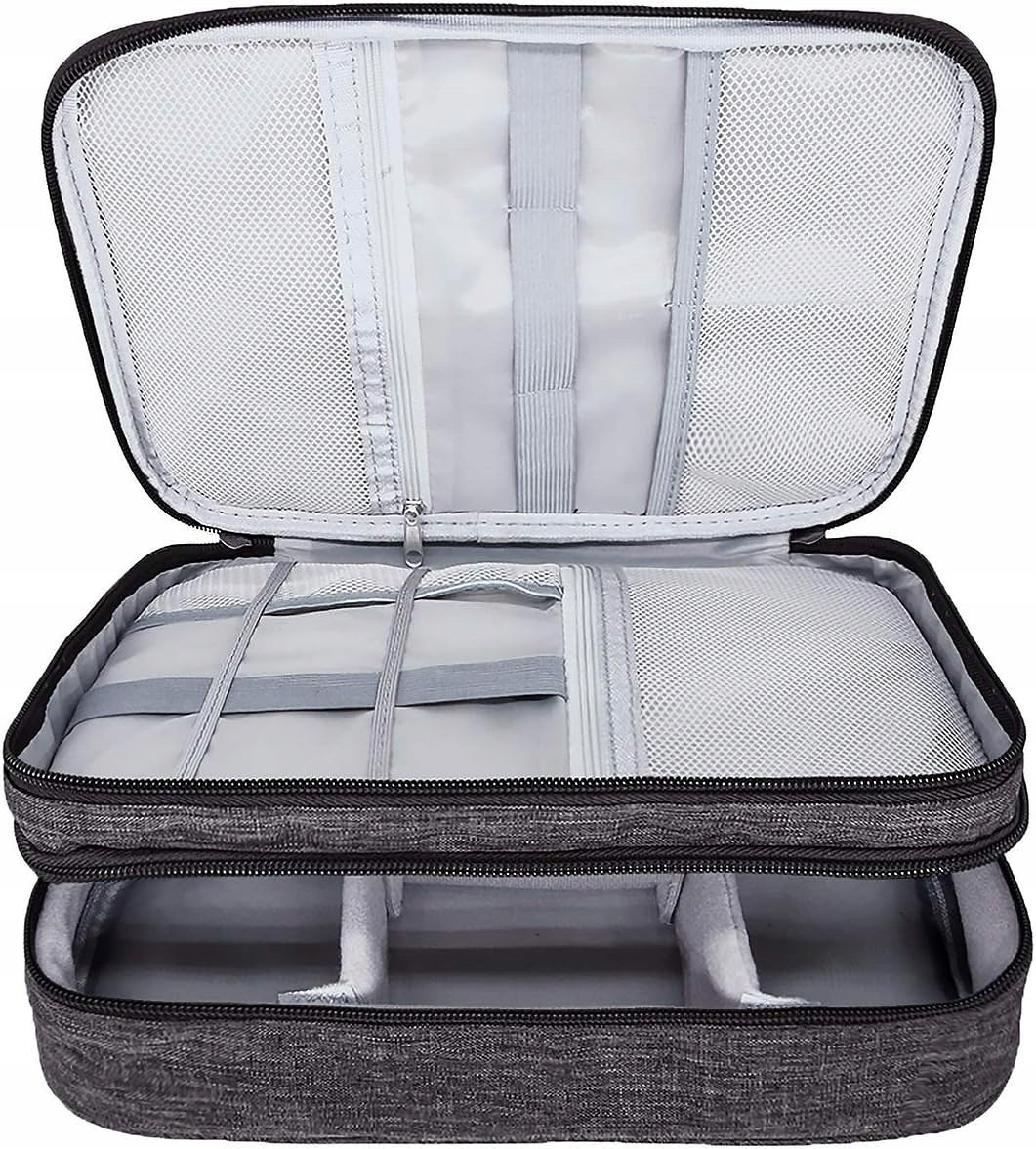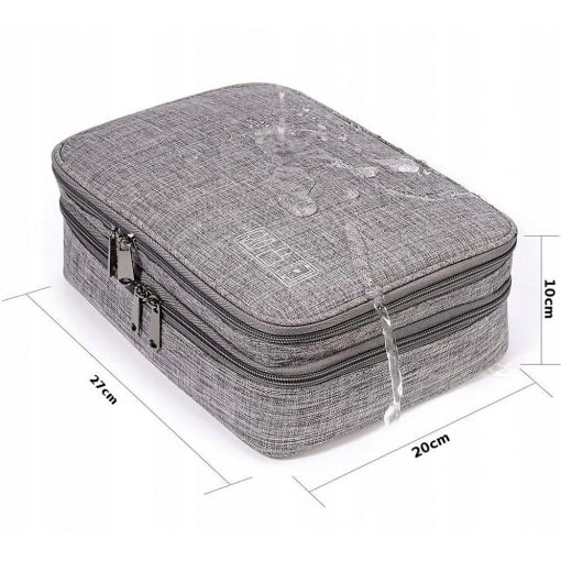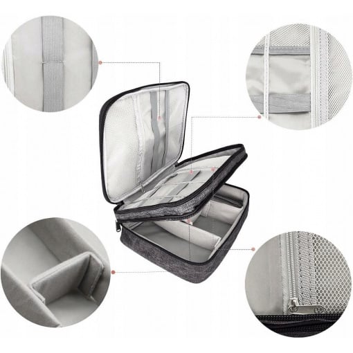 Организуйте и систематизируйте мелкую электронику в одном эстетичном футляре, который можно брать с собой куда угодно. Качественный органайзер для кабелей, проводов, карт памяти и всех других аксессуаров для электроустройств. Изделие имеет 2 больших отделения на молнии, множество отделений и петель для хранения необходимых аксессуаров. Кейс для кабелей и электроники с петлей для рук, из серого меланжевого материала, на молнии.