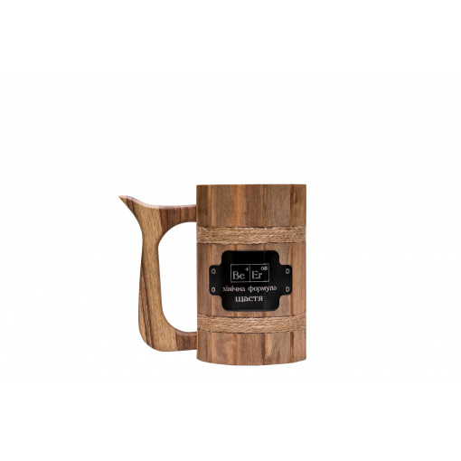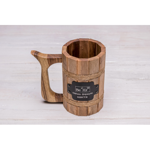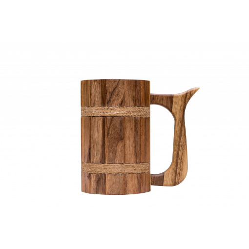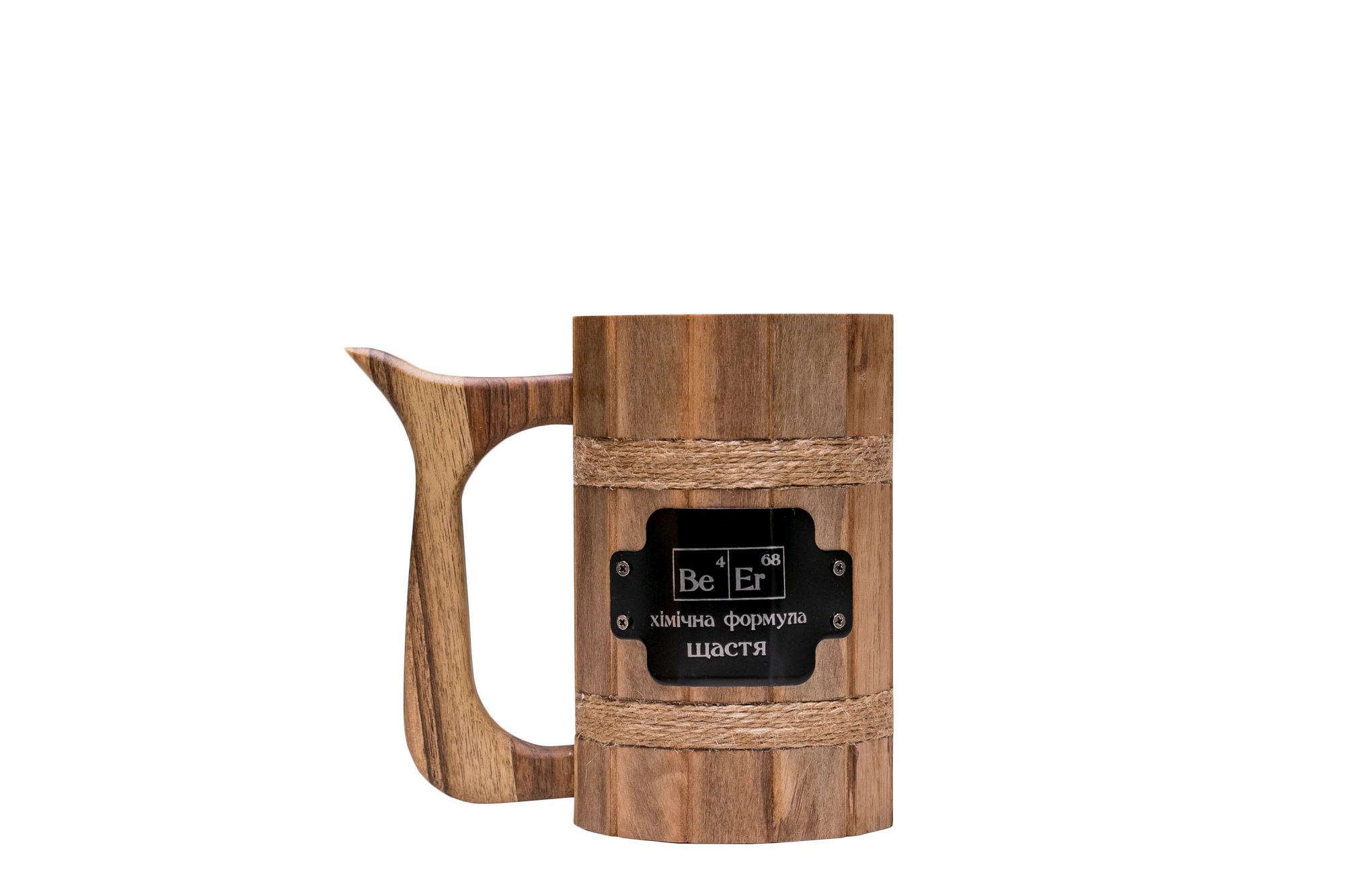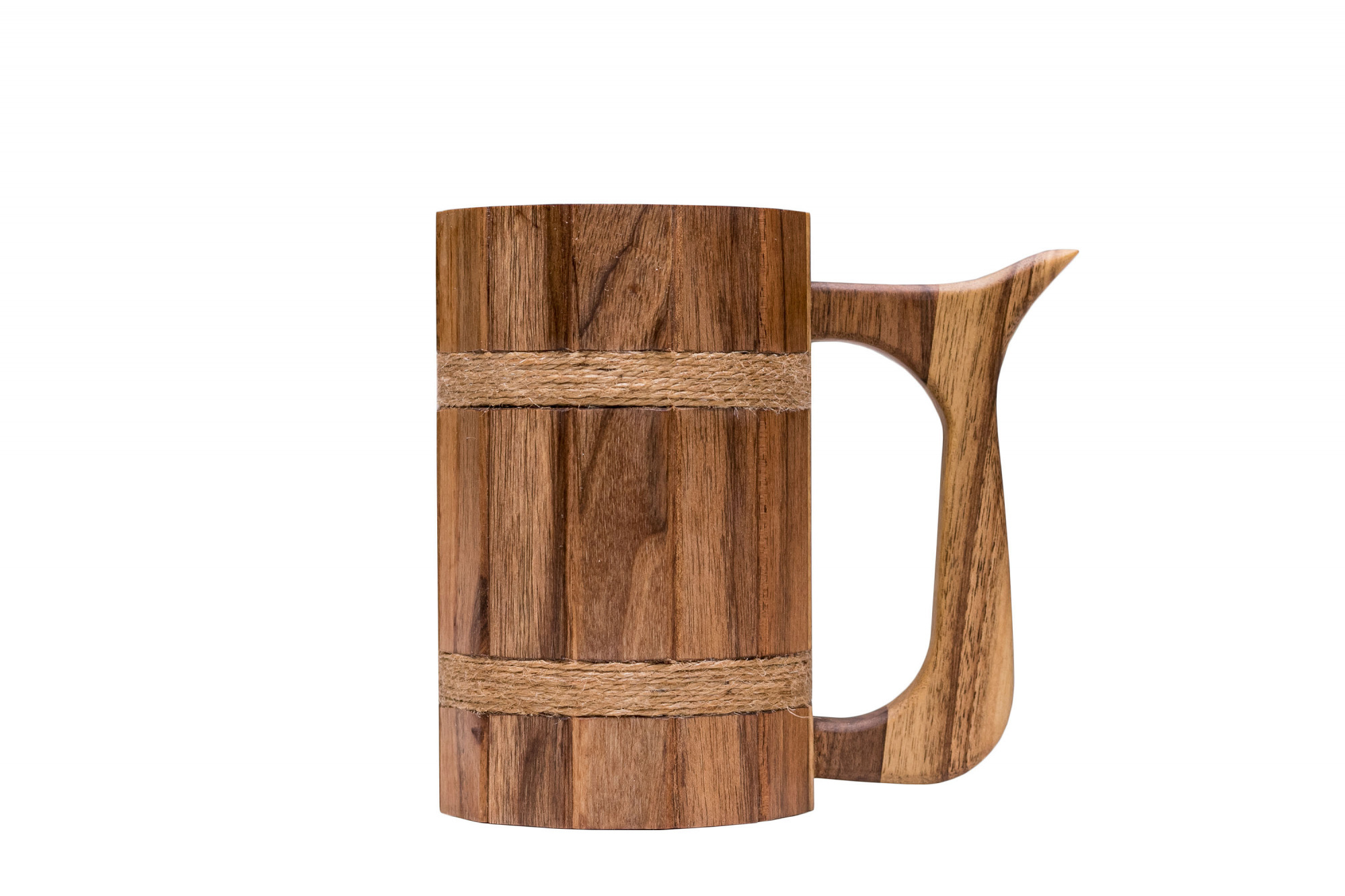 Деревянный сегментный (состоит из сегментов, ручки и дна) бокал EcoWalnut цилиндрической формы для холодных напитков с металлической бляхой. При употреблении хмельных напитков из деревянного бокала (в отличии от стеклянного) пенка не падает очень длительный период времени. Стук деревянного бокала несомненно куда более приятен и процесс распития пива превращается в веселую и легендарную затею. Кроме этого - бокал невозможно разбить.