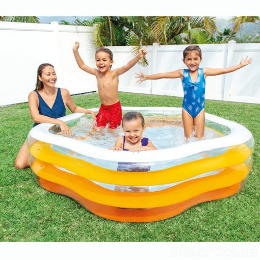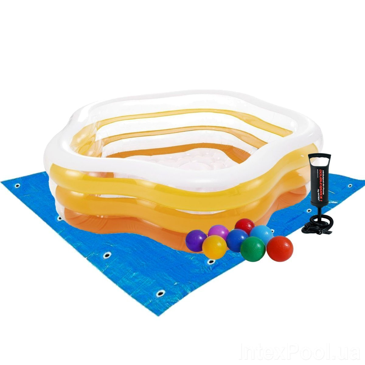 Детский надувной бассейн Intex 56495-2 «Морская звезда», 183 х 180 х 53 см, желтый, с шариками 10 шт, подстилкой, насосом (hub_pw7t2z)