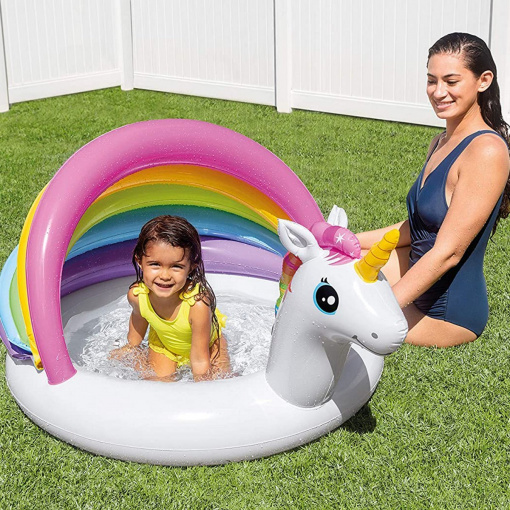 Детский надувной бассейн Intex 57113-1 «Единорог» с навесом, 127 х 102 х 69 см, с шариками 10 шт (hub_d13jly)