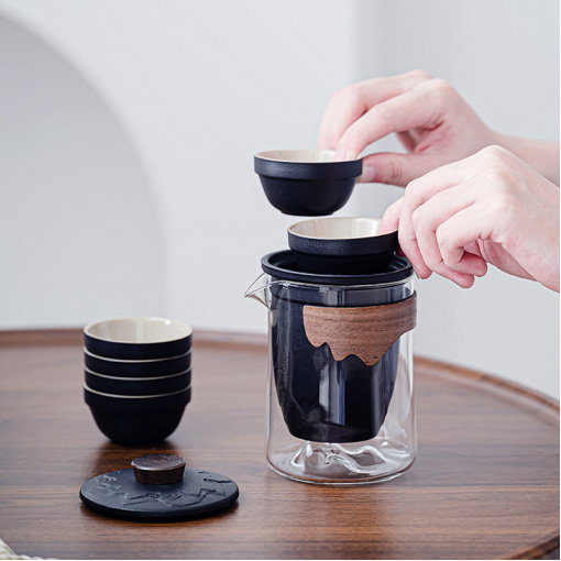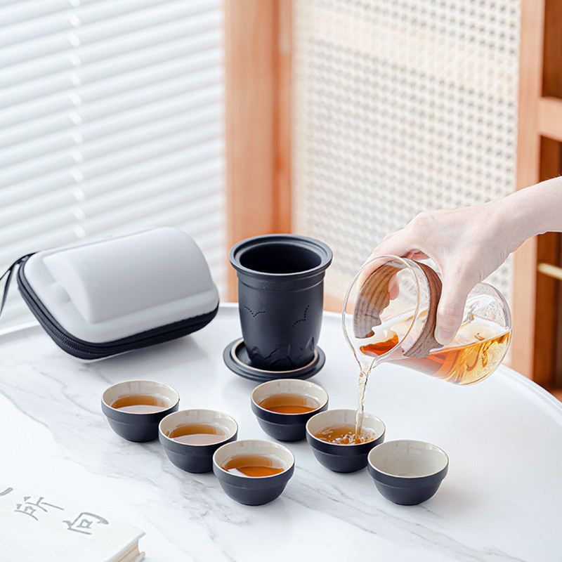 Дорожный чайный набор No Brand CX-3365 Black заварник и 6 пиал с чехлом 310 мл
