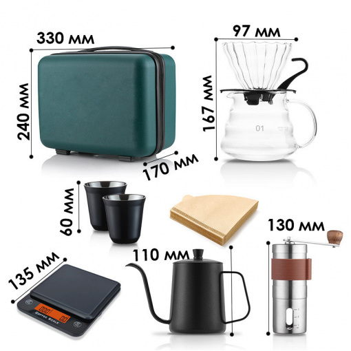 Дорожный кофейный набор Choxila – это идеальное решение для любителей кофе, которые не готовы отказаться от любимого напитка даже во время путешествий. Особенности: 2 чашки, электронные весы для измерения порционной дозировки, сумка-кейс для хранения и транспортировки. Choxila предназначен для любителей кофе, часто путешествующих или проводящих время на природе. Благодаря этому набору вы сможете наслаждаться ароматным и свежеприготовленным кофе в любом месте и в любое время. Это идеальный спутник для кемпинга, пикников, путешествий, командировок и других активных видов отдыха. Набор обеспечивает полный цикл приготовления кофе – от помола зерен до готового напитка. Набор включает в себя все необходимое для приготовления свежего кофе на двух человек, обеспечивая удобство и комфорт в любых условиях. Электронные весы позволяют точно измерить порцию кофе, что гарантирует безупречный вкус вашего напитка. Все предметы компактно упаковываются в удобную сумку-кейс, что облегчает их транспортировку и хранение. Набор станет отличным подарком для любого кофемана, даря возможность наслаждаться любимым напитком где угодно и когда угодно.