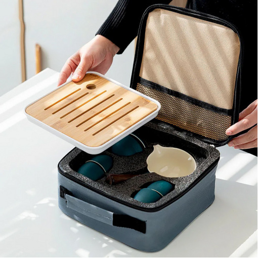 Чайный набор из 6 предметов для китайской чайной церемонии пуэра керамический Этот чайный сервиз предлагает не только эстетическое удовольствие, но и глубокий уют, возникающий во время чайной церемонии. Вдумчиво выбранный и ненавязчивый дизайн, внимательно подобранные материалы придают каждому предмету особый шарм. Набор состоит из: Поднос создан, чтобы добавить атмосферу и изящество вашей чайной церемонии. Он служит не только для подачи, но и для создания особого места, где вы можете наслаждаться каждым скольжением чашки. Чайник позволяет вам углубиться в мир ароматов и вкусов, следуя китайским традициям заваривания чая. Ощутите покой и гармонию в каждом глотке. Каждая чашка – это шедевр мастерства, выражение традиционного китайского искусства. Их изящные линии и удобная форма создают непревзойденный комфорт во время чаепития. Благодаря этому чайному набору, вы можете наслаждаться каждым глотком и ароматом чая, перенося себя в мир покоя и китайской гармонии. Чехол изготовлен из качественных материалов и олицетворяет в себе элементы китайского дизайна. Он добавляет защиту для сервиза и завершает аурой загадочности. Сервиз станет отличным подарком для тех, кто ценит не только чай, но изысканность китайской традиции.