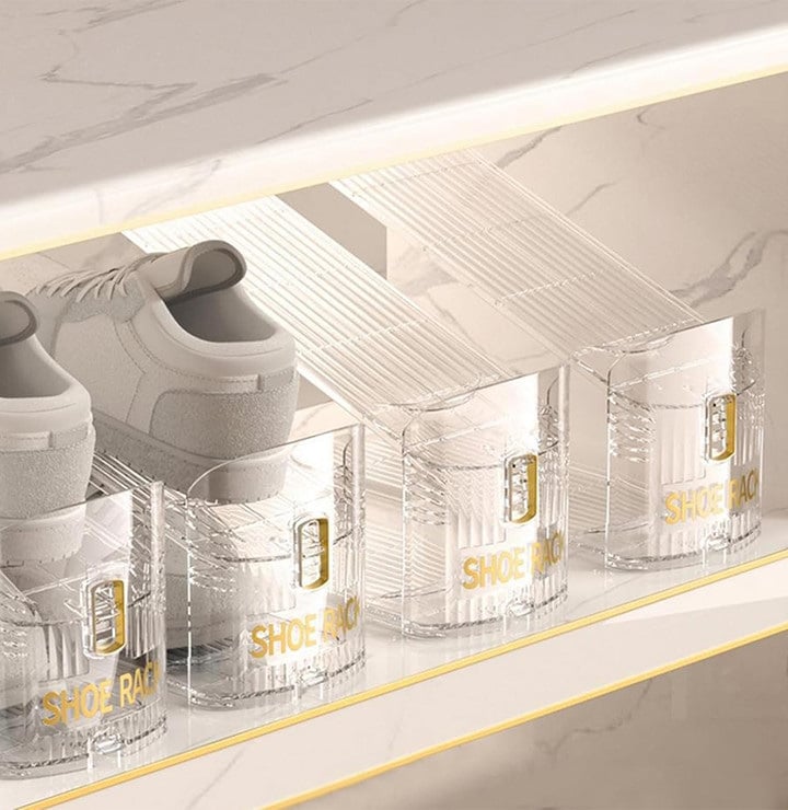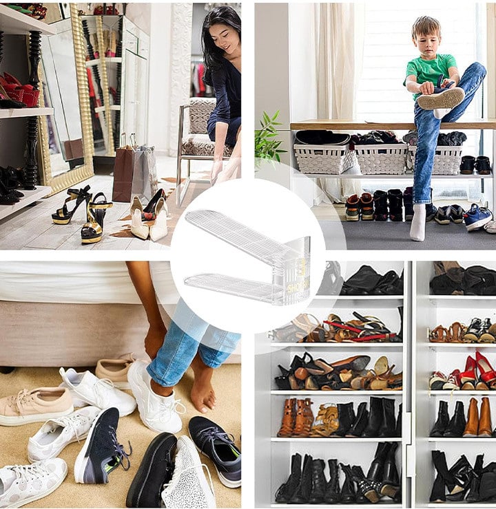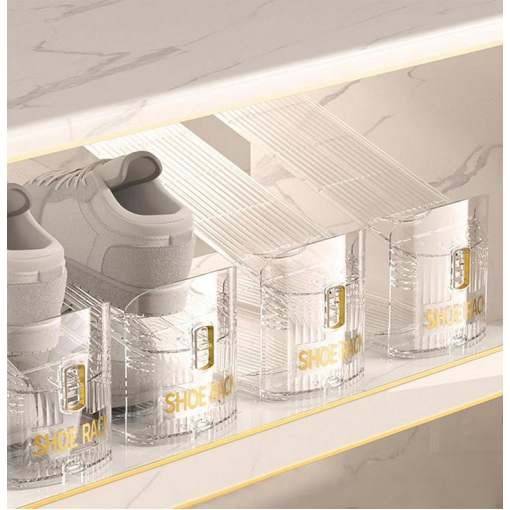 Двойные подставки Lesko 5037 Органайзер для обуви – идеальное решение для хранения и организации! Этот органайзер для обуви – настоящее спасение для тех, кто хочет поддерживать порядок в своем доме и сохранить обувь в идеальном состоянии. Благодаря продуманному дизайну, он помогает экономить пространство, сохранять порядок и защищать вашу обувь от повреждений. Особенности: Эффективное использование пространства: Органайзер позволяет хранить две пары обуви на одном месте, что удваивает полезный объем вашей обувной полки или шкафа. Это особенно важно для небольших квартир, где каждый сантиметр на счету. Защита от деформаций и повреждений: Благодаря специальной конструкции, обувь сохраняется так, что верхняя часть не касается подошвы другой обуви, что уменьшает риск появления царапин, деформаций и других повреждений. Легкость в использовании: Органайзер очень прост в использовании – обувь легко ставится и снимается, что экономит время во время утренних сборов или уборки. Прозрачный материал позволяет легко увидеть, какая пара обуви находится на каждой полочке. Современный дизайн: Прозрачная конструкция органайзера выглядит стильно и современно, он гармонично впишется в интерьер любой комнаты или гардеробной. Лаконичный вид отлично подходит для минималистических интерьеров. Долговечность и надежность: Изготовлен из прочного пластика, органайзер устойчив к механическим повреждениям и прослужит вам долгие годы, обеспечивая безупречный порядок. Этот органайзер для обуви – идеальное решение для тех, кто хочет сохранить порядок в доме, эффективно использовать пространство и обеспечить долговечность обуви. Организация гардеробной комнаты: Используйте органайзер для сохранения гардероба в безупречном состоянии. Больше не нужно искать обувь среди беспорядков – все будет на своем месте. Поддержание порядка в прихожей: С органайзером обувь всегда будет аккуратно собрана, что позволит вам быстро найти нужную пару перед выходом из дома. Хранение сезонной обуви: Идеально подходит для хранения сезонной обуви, которая используется реже. Предохраняет его от деформаций и загрязнений.
