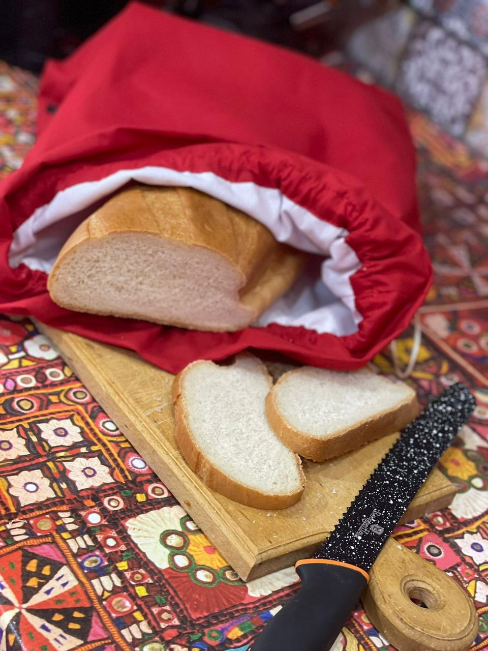 Имеет уникальную трехслойную технологию сохранения свежести хлеба: два слоя натуральной ткани (100% хлопок) используются для того, чтобы хлеб не терял влагу, но и не плесенел, а специальная дышащая мембрана между ними оставит хлеб надолго мягким и полезным. * Многоразовая. Использование исключительно натуральных тканей позволяет дополнительно сэкономить продукт, благодаря антисептическим свойствам. * Герметичная. Имеет удобный фиксатор. * Универсальный размер: 32*36 см.