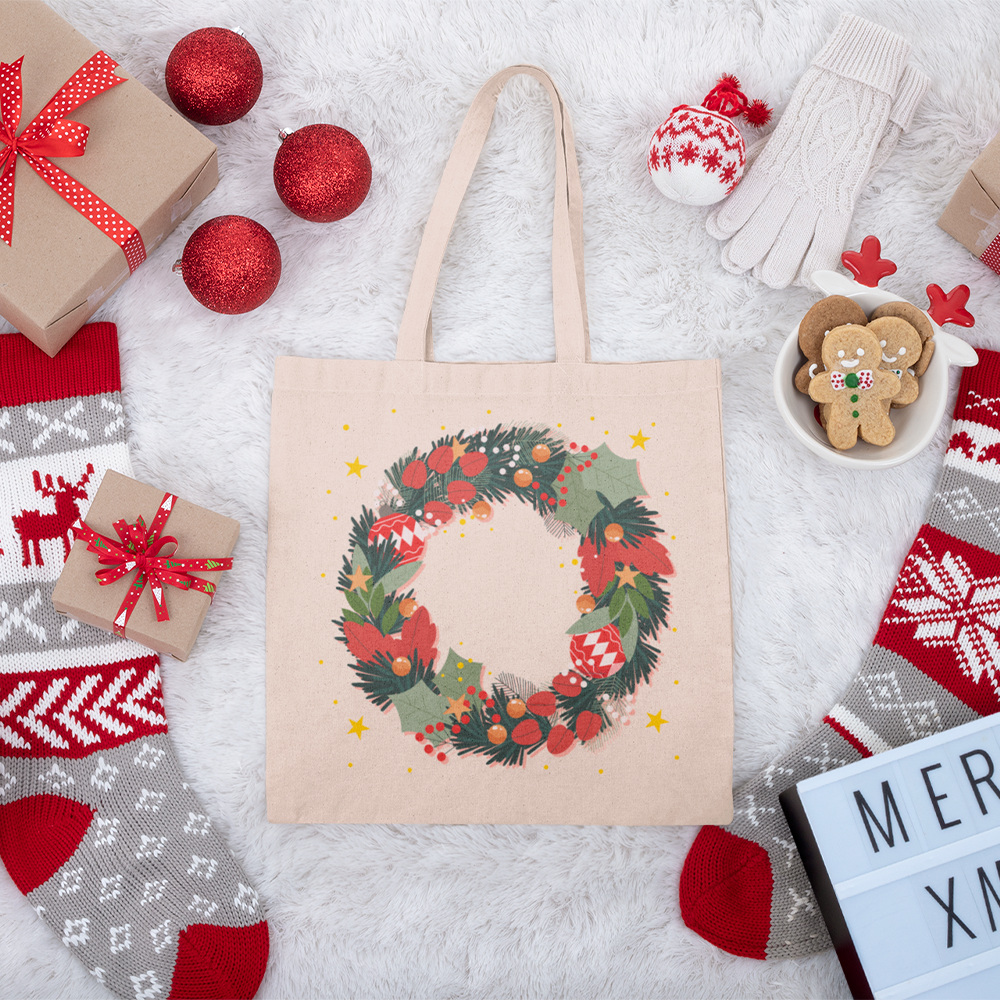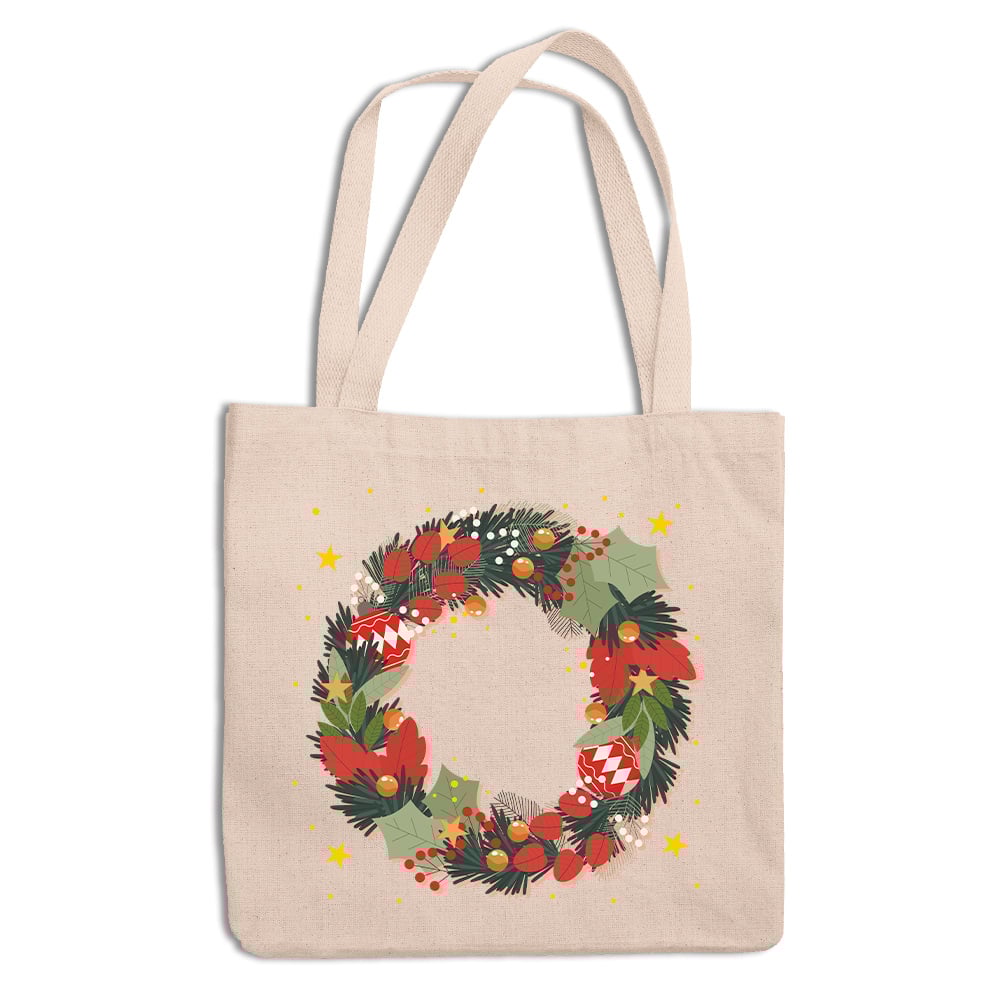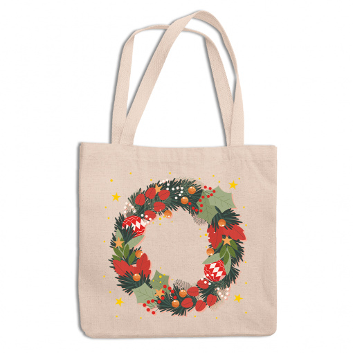 Эко-сумка с новогодним принтом Кавун Новогодний венок 38х42х10 см Разноцветный ЕСШ001424