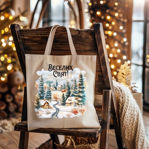 Эко-сумка с новогодним принтом Кавун Веселих Свят 38х42х10 см Разноцветный ЕСШ001429