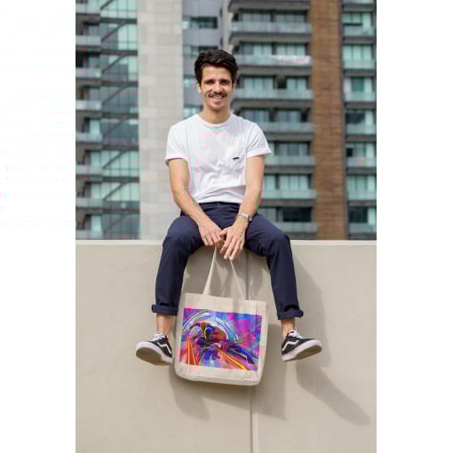Эко-сумка шоппер с аниме принтом Человек-паук Паутина Вселенных Spider-Man Across the Spider-Verse Кавун Бежевый