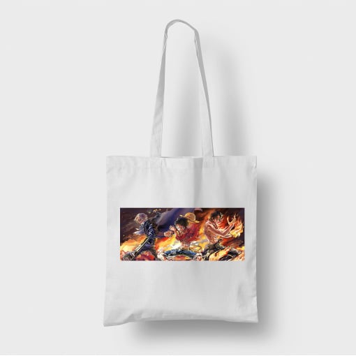 Эко-сумка шоппер с аниме принтом One Piece Ван-Пис Luffy Луффи Sanji Санджи Portgas Ace Портгас Эйс Кавун Бежевый