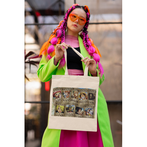 Эко-сумка шоппер с аниме принтом One Piece Ван-Пис Розыскная листовка Franky Фрэнки Usopp Усопп Luffy Луффи Кавун Бежевый