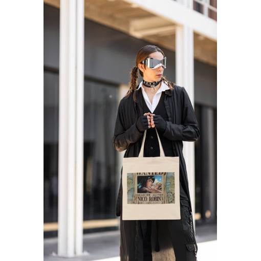 Эко-сумка шоппер с аниме принтом One Piece Ван-Пис Розыскная листовка Nico Robin Нико Робин Кавун Бежевый