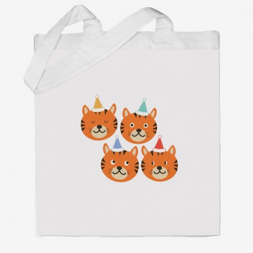 Эко-сумка шоппер с принтом 4 тигренка Кавун Бежевый