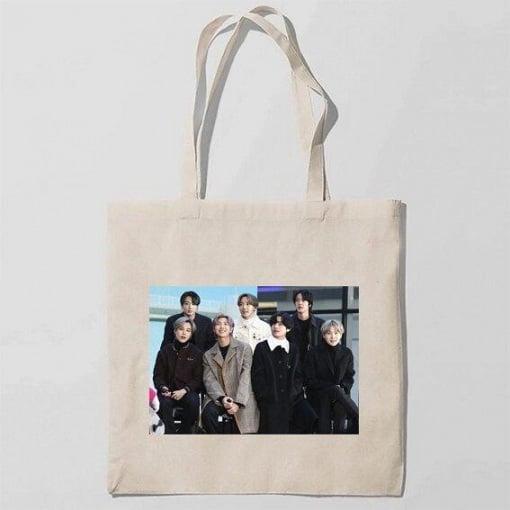 Эко-сумка шоппер с принтом BTS 5 Кавун Бежевый