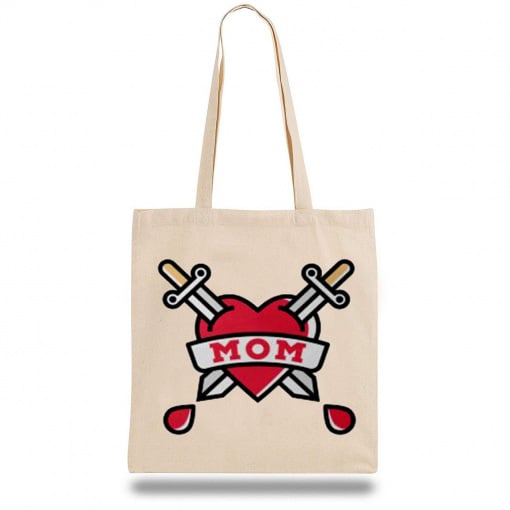 Эко-сумка шоппер с принтом "Mom" Кавун Бежевый
