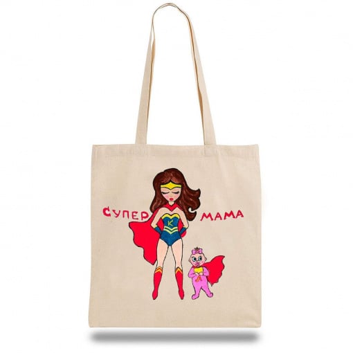 Подробные характеристики Эко-сумка шоппер с принтом "Супер мама" Кавун Бежевый.