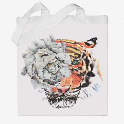 Эко-сумка шоппер с принтом Тигр и белый цветок Кавун Бежевый