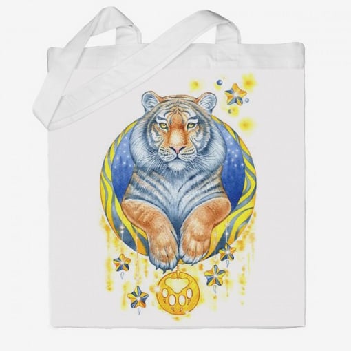 Подробные характеристики Эко-сумка шоппер с принтом Тигр и звезды Кавун Бежевый.