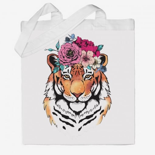 Подробные характеристики Эко-сумка шоппер с принтом Тигр с цветами на голове Кавун Бежевый.