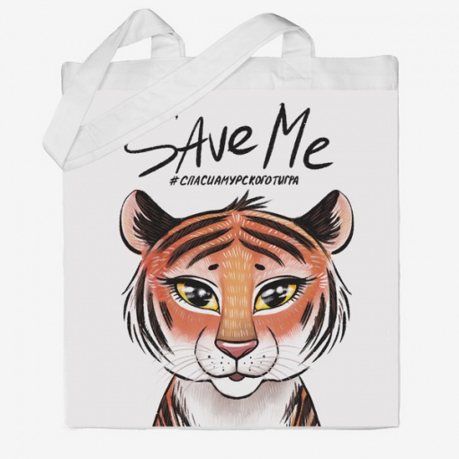 Подробные характеристики Эко-сумка шоппер с принтом Тигр Save Me Кавун Бежевый.