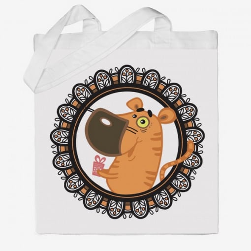 Подробные характеристики Эко-сумка шоппер с принтом Тигр в кругу с подарком Кавун Бежевый.