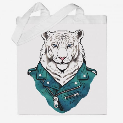 Эко-сумка шоппер с принтом Тигр в курточке Кавун Бежевый