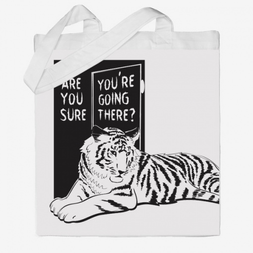 Эко-сумка шоппер с принтом Тигр You're going there? Кавун Бежевый