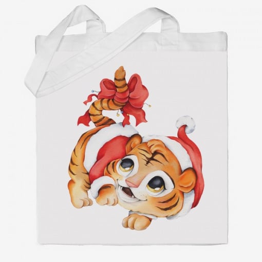 Эко-сумка шоппер с принтом Тигренок в новогоднем костюме Кавун Бежевый