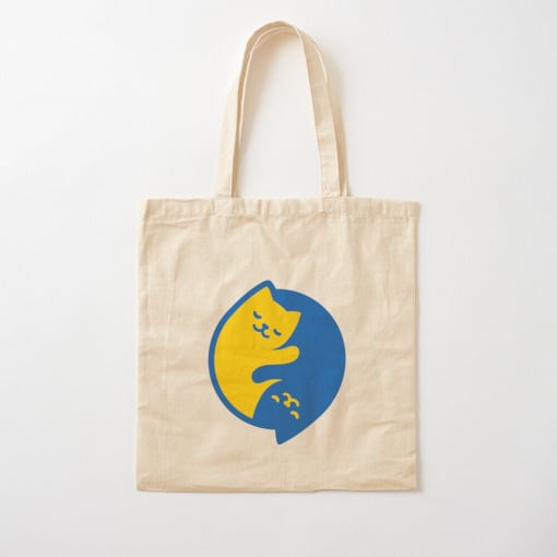 Эко-сумка шоппер с принтом "Украинские коты Инь Ян синий и желтый 1" Кавун Бежевый