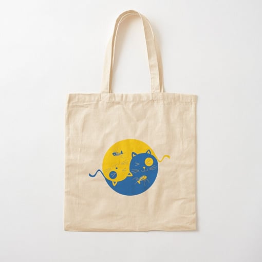 Эко-сумка шоппер с принтом "Украинские коты Инь Ян синий и желтый 2" Кавун Бежевый