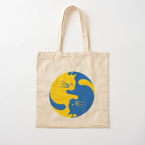 Эко-сумка шоппер с принтом "Украинские коты Инь Ян синий и желтый 4" Кавун Бежевый
