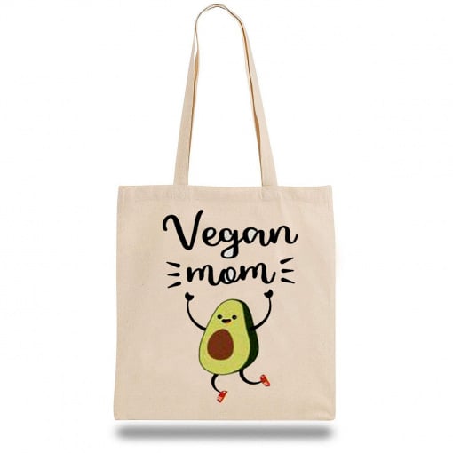 Эко-сумка шоппер с принтом "Vegan Mom" Кавун Бежевый