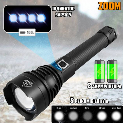 Фонарик ручной тактический XBalog XHP90-602 масштабируемый свет, 5 режимов яркости, стробоскоп SOS, USB зарядка