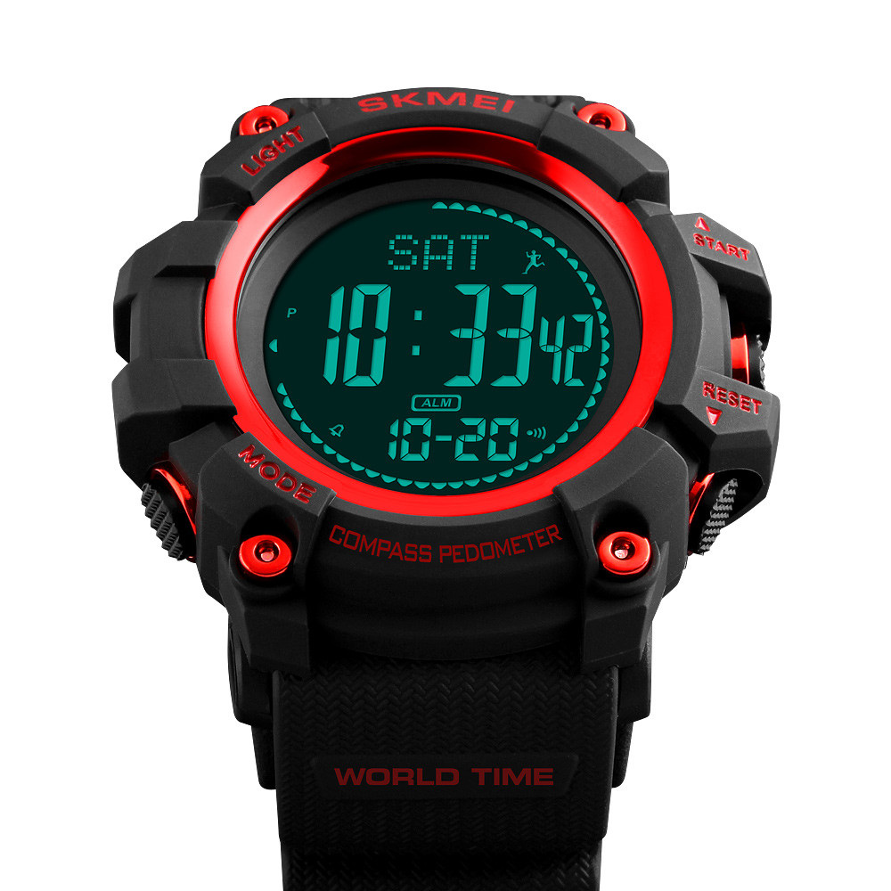 Годинник має електронний циферблат і пропонує широкий набір функцій. Вони оснащені будильником, другим часовим поясом та відображають рік, дату, день тижня, місяць та секунди. Крім того, в цьому годиннику є компас, який допоможе вам орієнтуватися під час активних пригод і подорожей. Вони також оснащені лічильником калорій, таймером та фітнес-трекером, що дозволяє відстежувати ваші фізичні показники та досягати своїх спортивних цілей. Шагомер допоможе вам підтримувати активний спосіб життя, а водонепроникний корпус та протиударна конструкція захистять годинник в умовах інтенсивних тренувань та екстремальних ситуацій. Циферблат відображає день тижня, місяць, хвилини, секунди та години, а також поточну дату та число. Електролюмінесцентне підсвічування забезпечує хорошу видимість навіть за нестачі освітлення.