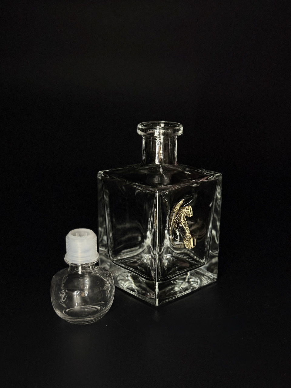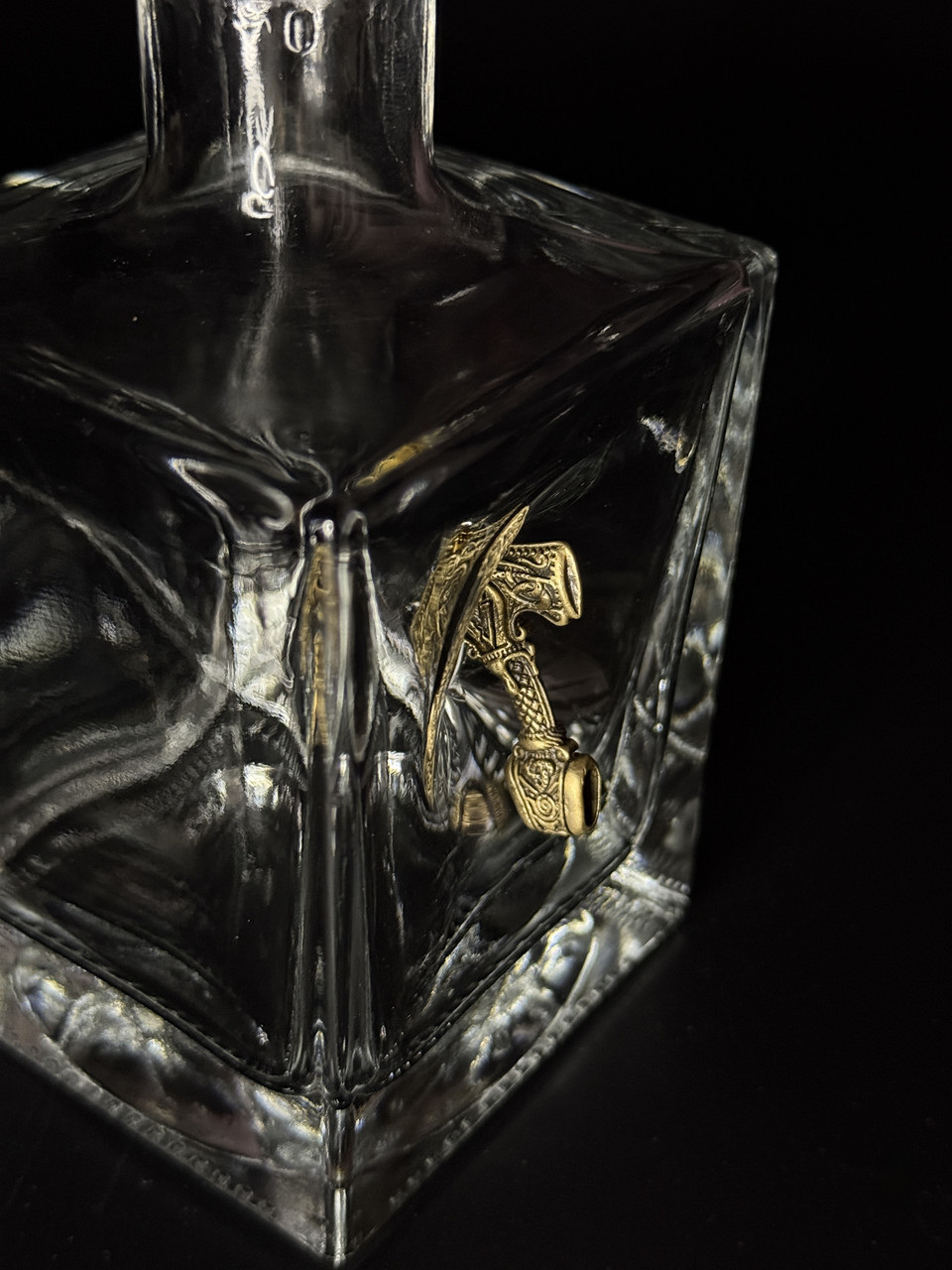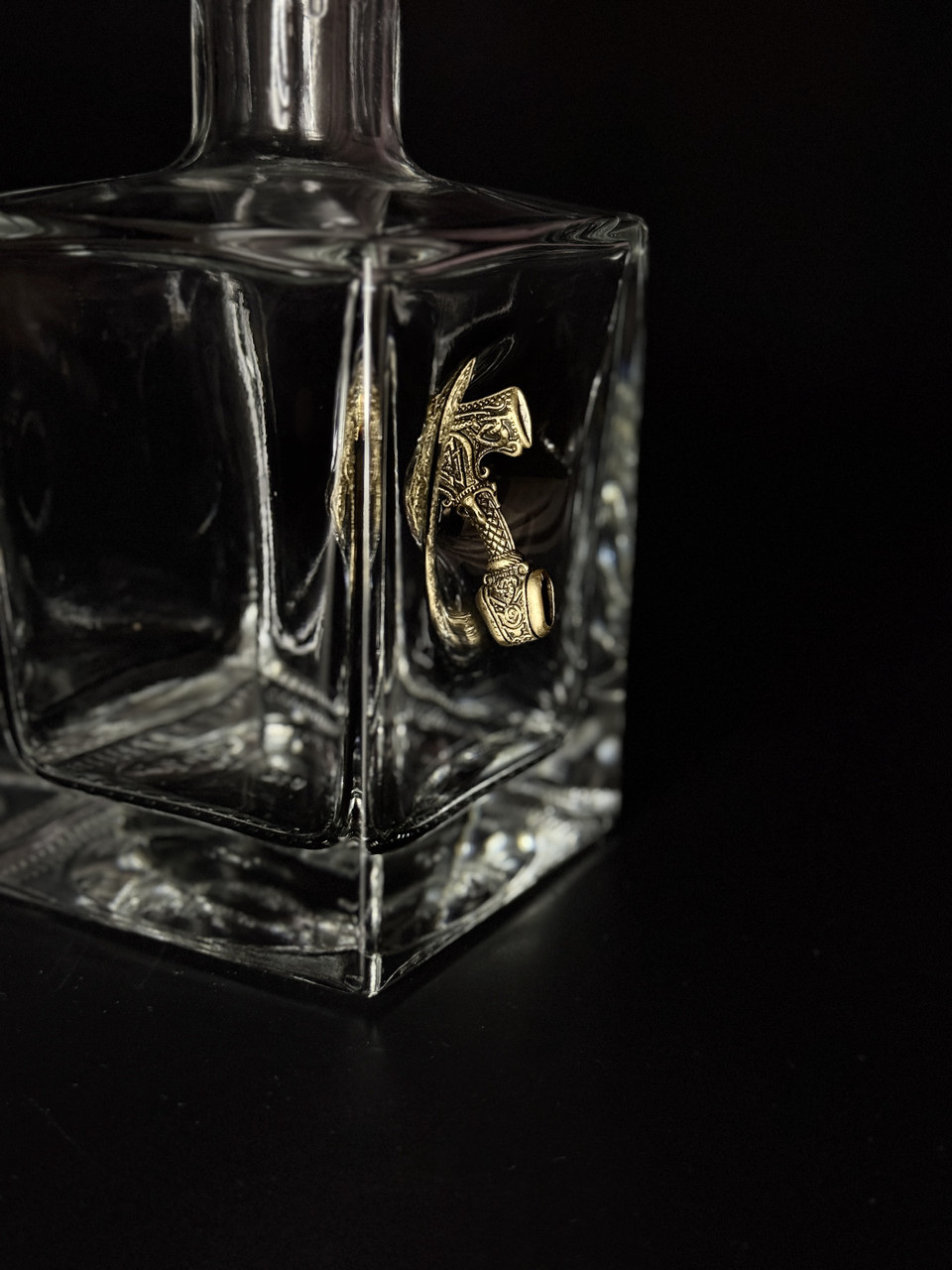 Изделие украшено изысканным металлическим элементом в виде молота Тора — символа силы и отваги в скандинавской мифологии. Каждый предмет выполнен из прочного стекла с объемной металлической вставкой, придающей изделию уникальный и брутальный внешний вид. Оригинальный дизайн делает набор не просто посудой, а настоящим предметом коллекции.